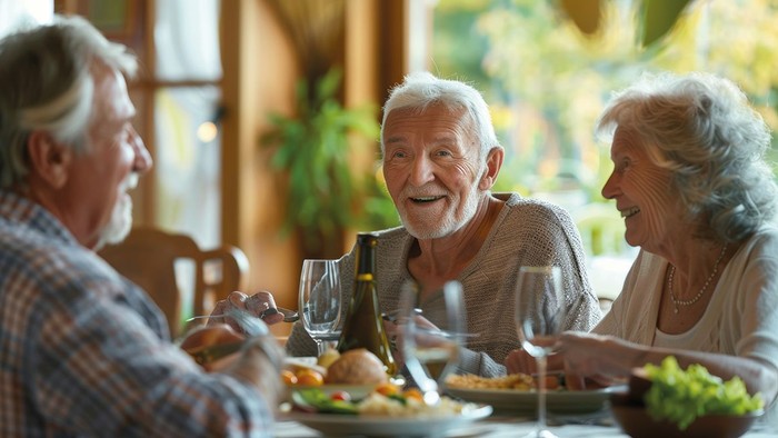 Den sidste mandag i måneden spiser vi lækker mad sammen, og hygger os i et par timer.